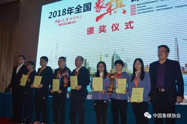 2018年全国象棋锦标赛(团体)今天在天津滨海新区落幕。最终男子组提前一轮夺冠的黑龙江队末战不敌广东,冠军战绩定格为九战六胜二平一负14分,上届冠军四川队靠着郑惟桐绝杀一击取胜山东,四川积13分获得亚军。上海季军,杭州、广东、厦门4-6名。女子组“象棋女神”时凤兰神奇的七战全胜,广东女队以七战六胜一平积13分取得桂冠,北京队收官战无法攻破杭州城池,5胜2平12分位居亚军,浙江季军,河北、四川、湖北4-6名。